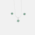 Snowfleur is a timeless sterling silver jewellery set inspired by the elegance of blooming snowflakes. Expertly crafted from 92.5 sterling silver, this set features a beautifully detailed snowflake-shaped pendant and matching earrings, adorned adorned with rich green/deep blue stones and sparkling cubic zirconia for a brilliant, eye-catching shine. The rhodium plating enhances durability and prevents tarnish, making it perfect for long-lasting wear. Designed for women, Snowfleur is an ideal choice for festive occasions, weddings, or everyday elegance, adding a graceful charm to any outfit.